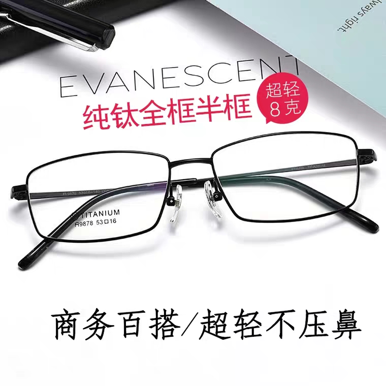 近视眼镜男超轻商务全半框舒适眼睛框纯钛有度数配成品小框近视镜