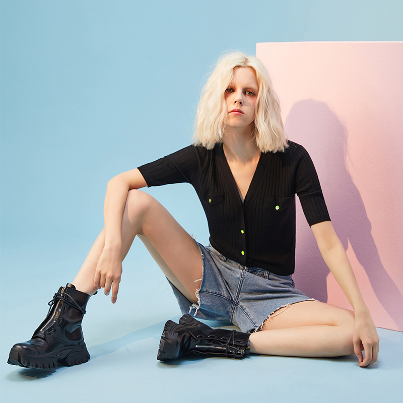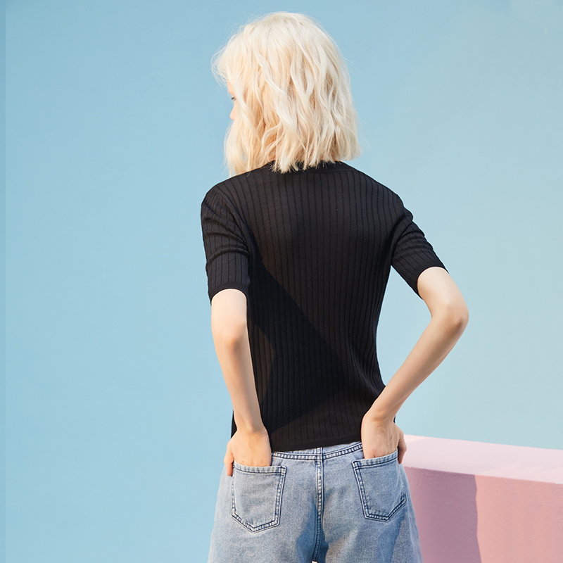 洲升/CHAU.RISING春夏休闲羊毛短袖开衫修身针织衫女原创设计