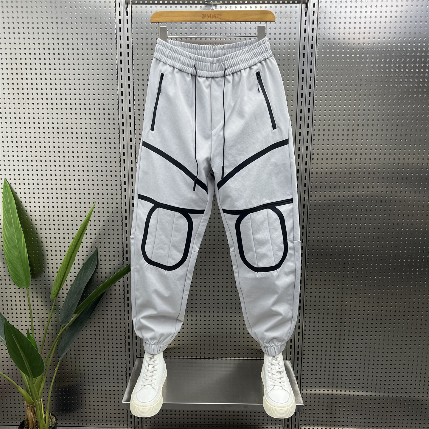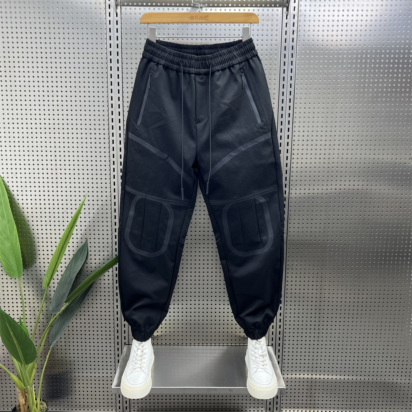 休闲裤男2025秋冬新款宽松拼接运动裤男士潮流拉链口袋束脚哈伦裤
