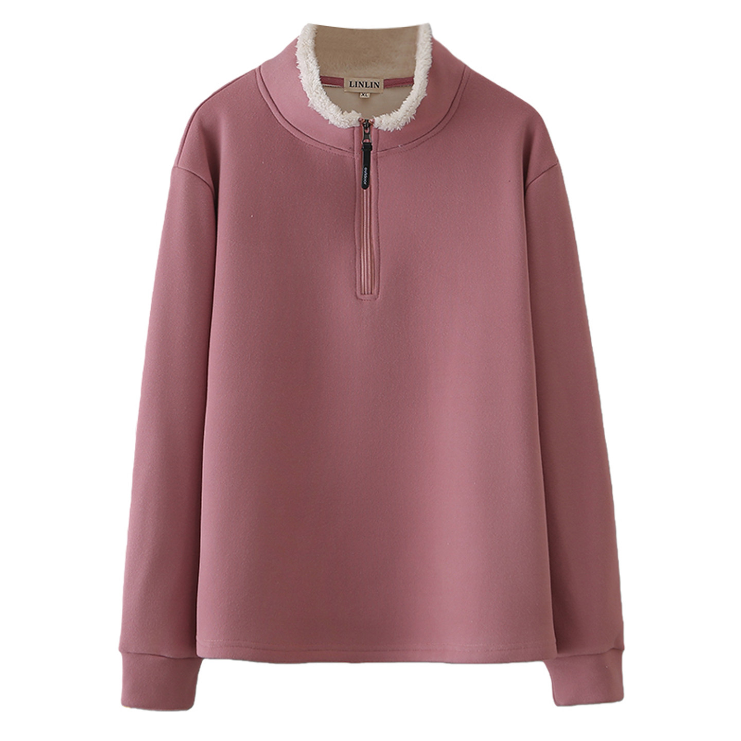 加绒加厚卫衣女胖mm大码200斤毛毛拼接立领半拉链保暖打底衫上衣