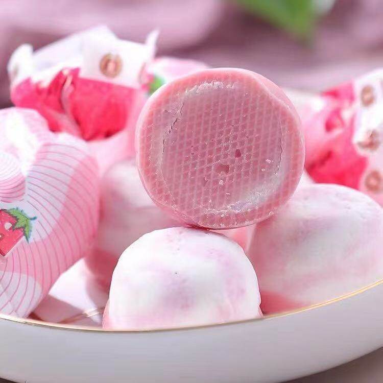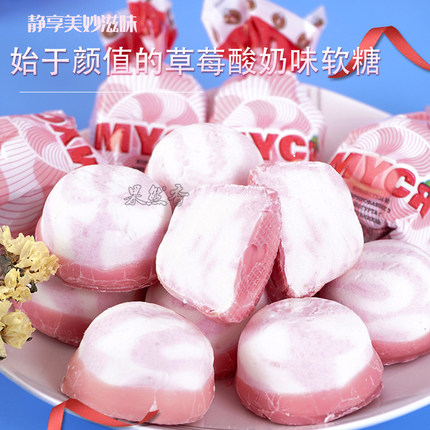 俄罗斯进口糖果俄小淼草莓味酸奶夹心巧克力棉花软糖儿童零食喜糖