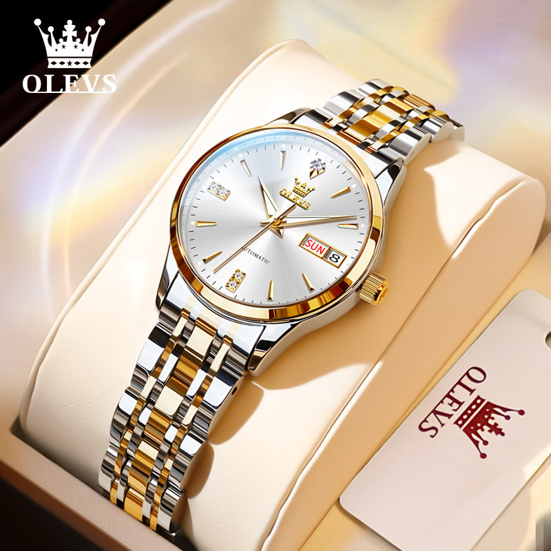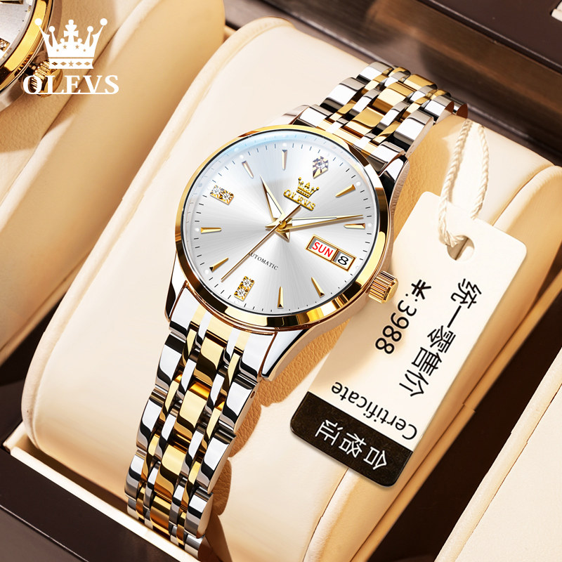 欧利时正品女士全自动机械表轻奢钢带手表夜光防水气质瑞士腕表女