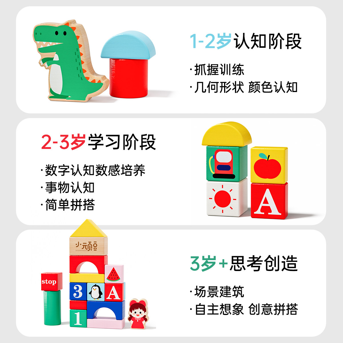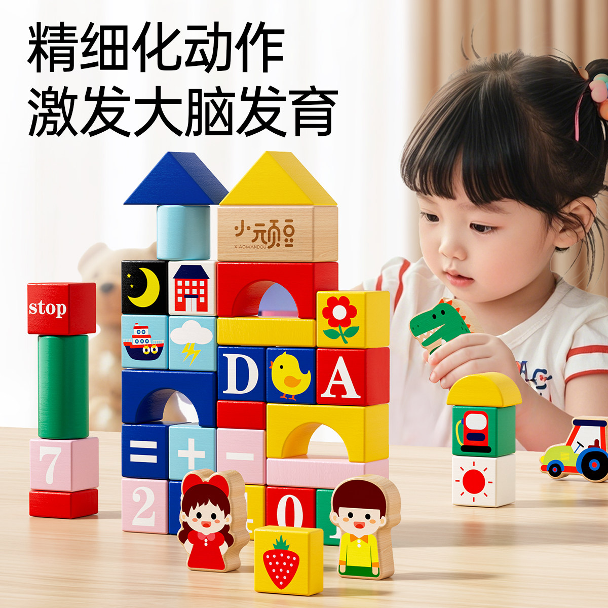 宝宝木头积木0到3岁婴儿童6男孩女孩2一岁早教益智大颗粒拼装玩具