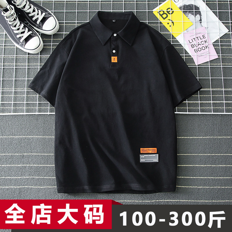 短袖t恤男翻领大码polo衫国潮夏季胖子宽松加肥加大300斤男装上衣