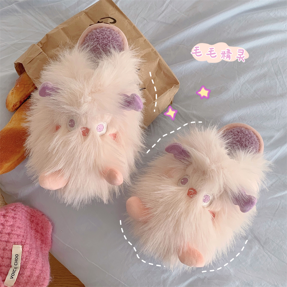 细细条 棉拖鞋女秋冬季居家保暖可爱少女心粉色小怪兽毛毛月子鞋
