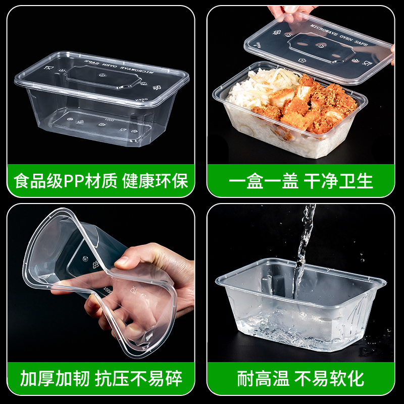 500/650/750ml一次性餐盒饭盒长方形打包盒外卖快餐盒商用加厚