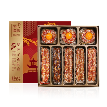 美心腊味杂锦礼盒广式腊肠香肠腊肉年货特产广东红肠烤肠年货