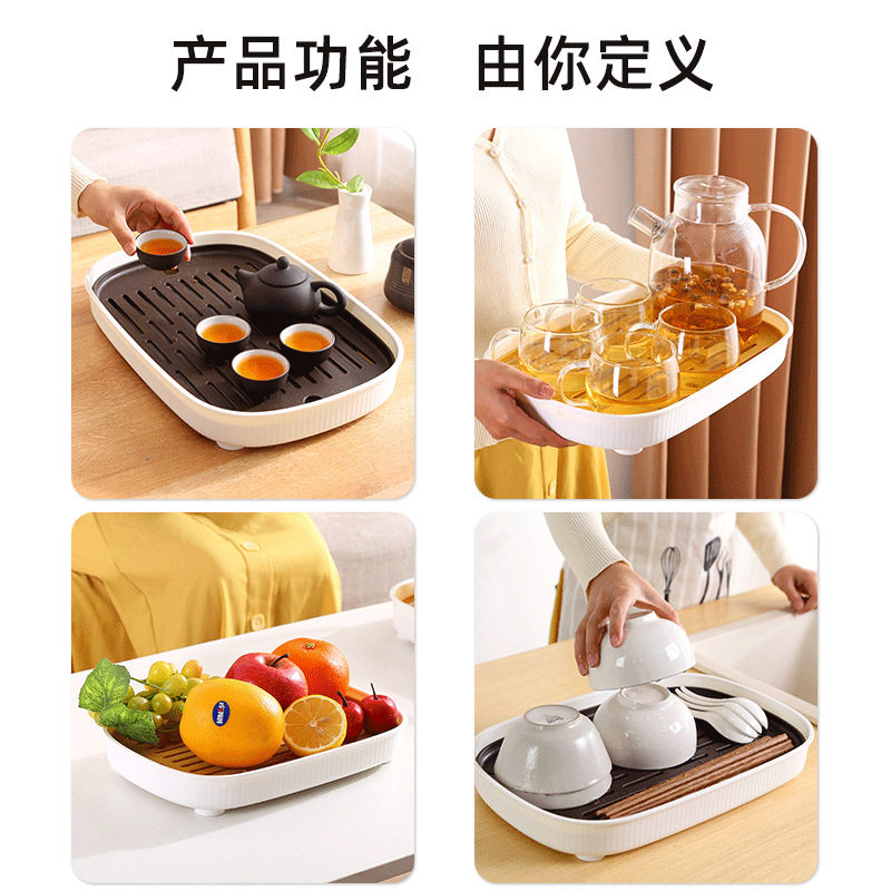 家用客厅户外露营双层仿木纹托盘水果盘塑料沥水篮沥水盘功夫茶盘