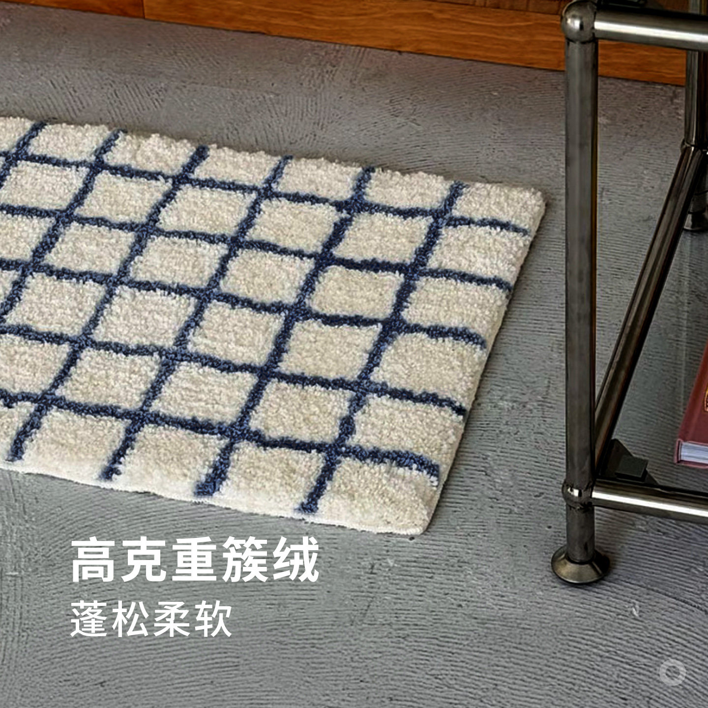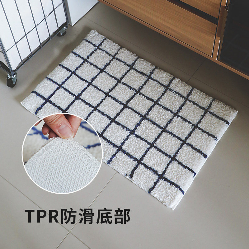 霜山卫生间地垫吸水防滑脚垫家用卧室客厅地毯简约格纹可机洗地垫