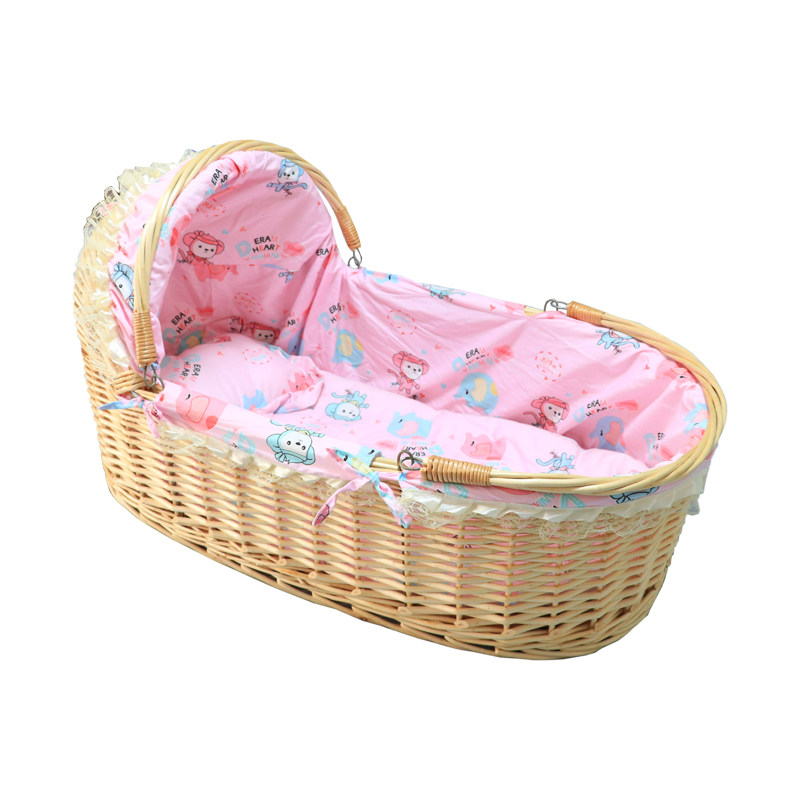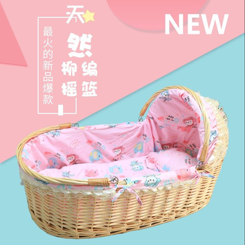 婴儿床安抚车载手提篮外出便携式新生儿哄睡哄娃神器藤编实木摇篮