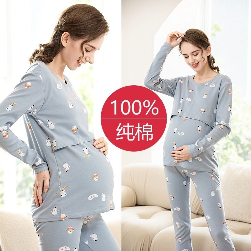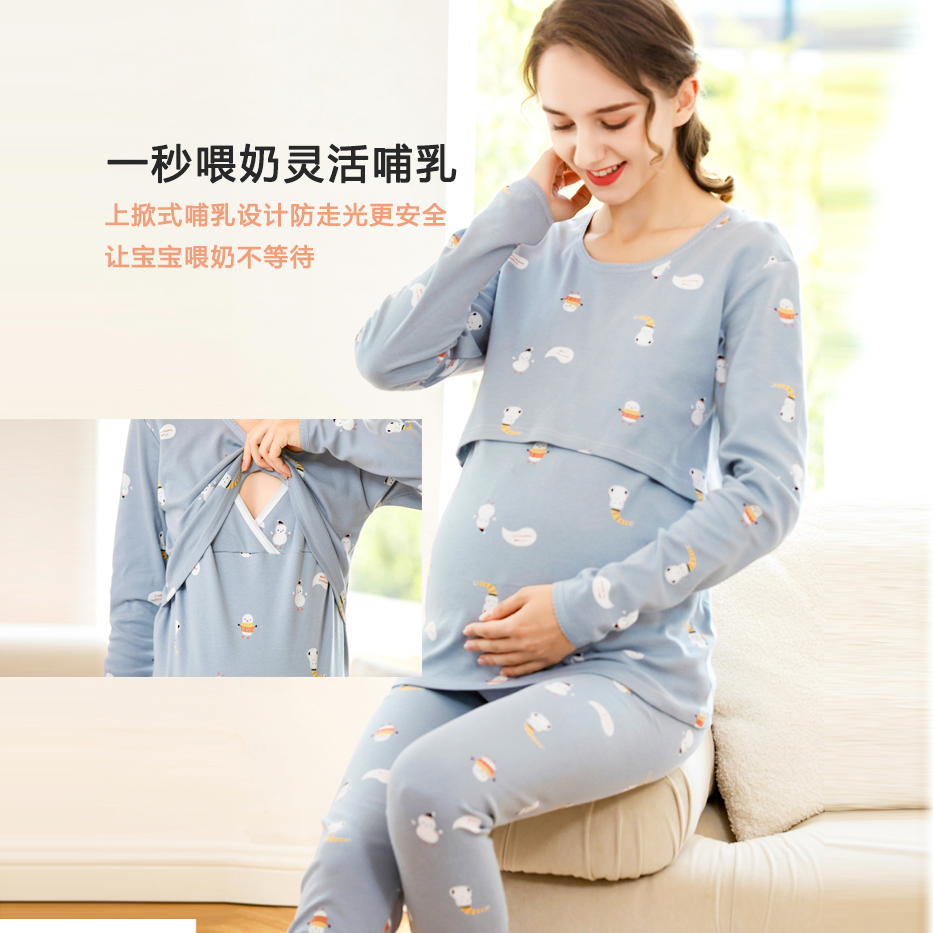 孕妇秋衣秋裤套装纯棉毛衫秋冬季产后保暖内衣哺乳期睡衣月子服