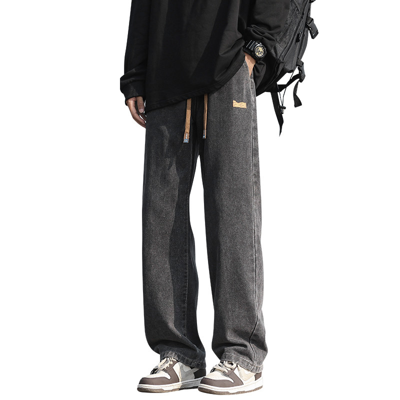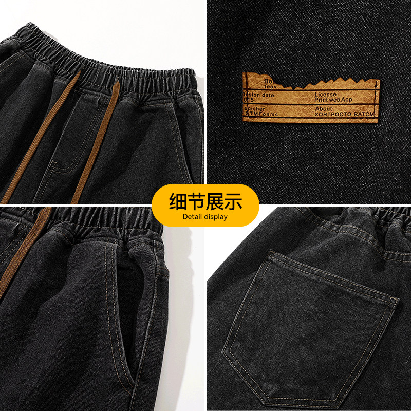 水洗做旧牛仔裤男士2026夏季新款黑色宽松直筒松紧腰休闲长裤子男