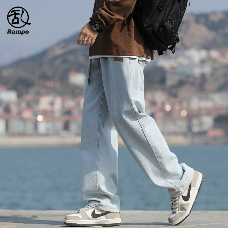 水洗做旧牛仔裤宽松直筒休闲长裤