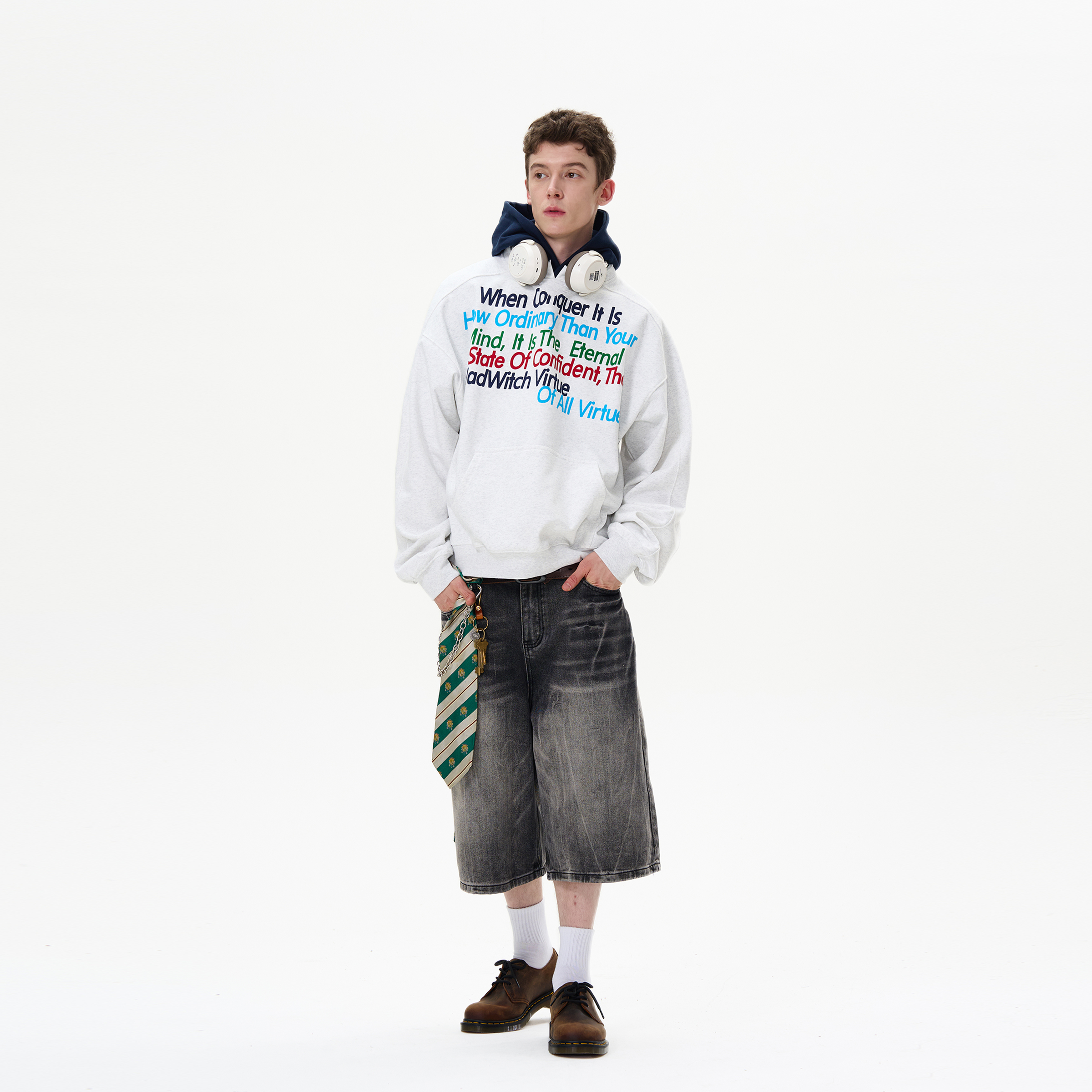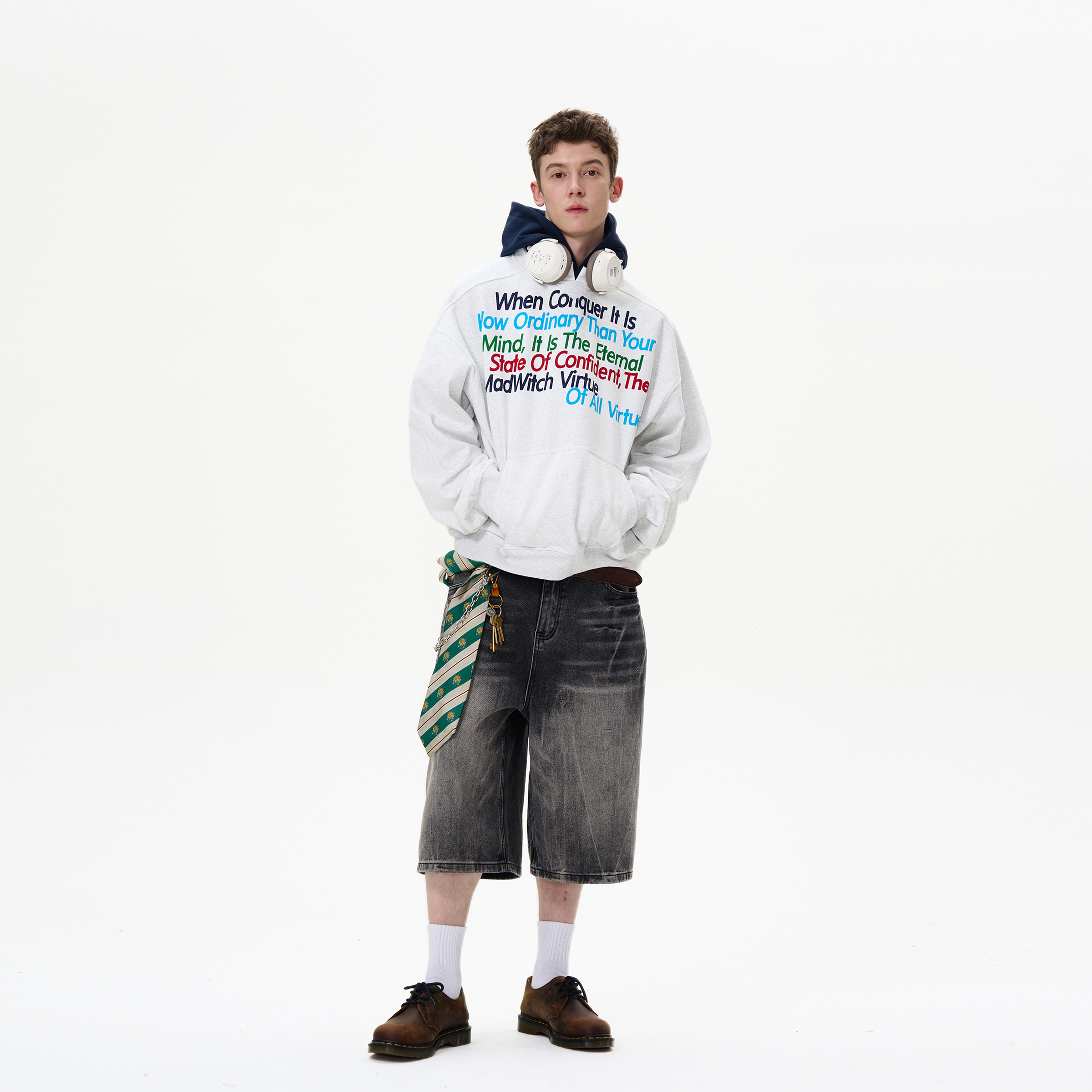 MADWITCH原创设计彩虹字母撞色连帽卫衣男女美式复古宽松休闲外套