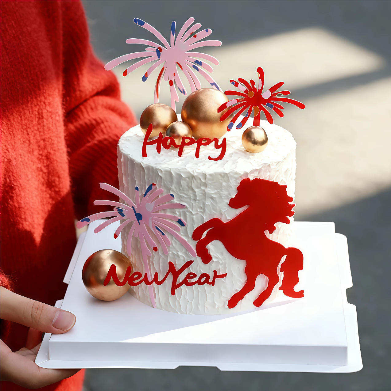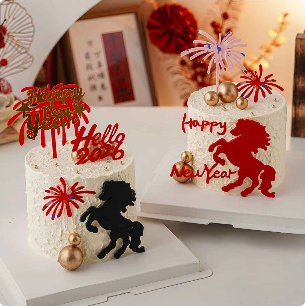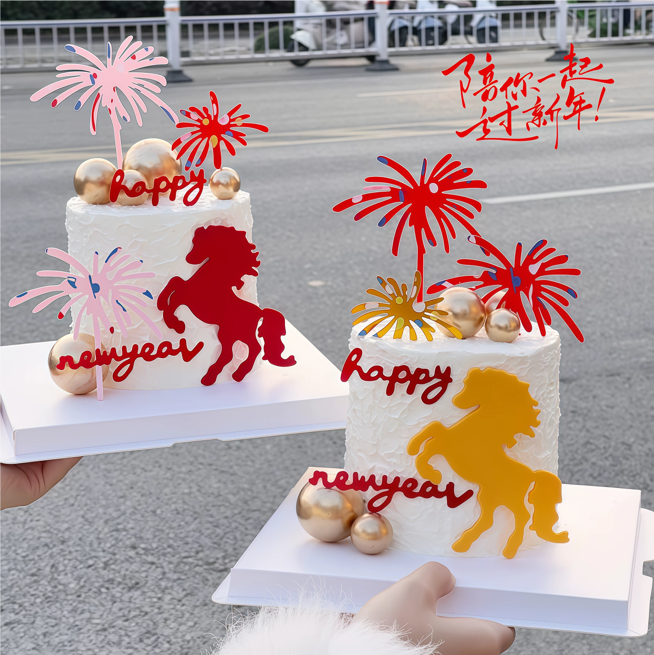 新年马年蛋糕装饰摆件2026跨年金马红马亚克力马到成功节日装扮