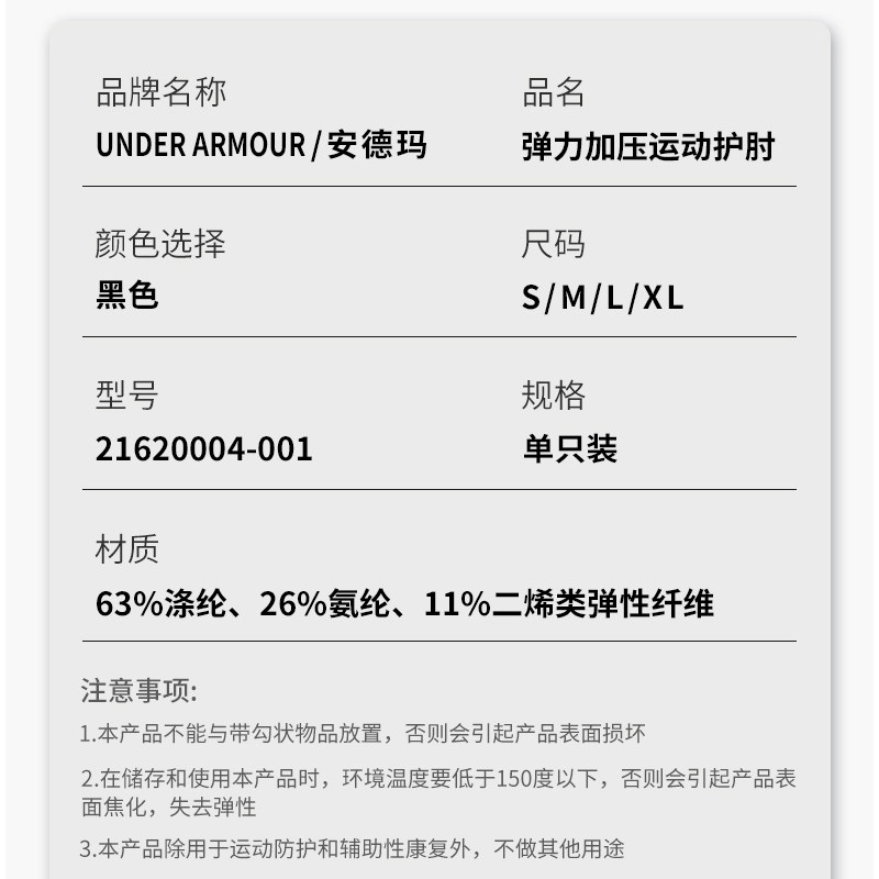 安德玛运动护肘手腕胳膊保护套