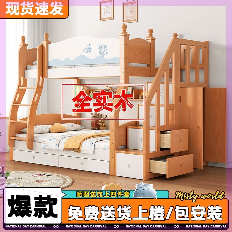 全实木上下铺双层床经济型带衣柜子母床儿童床高低床两层床上下床