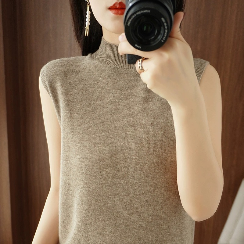 断码39元半高领羊毛背心女西装内搭外穿上衣坎肩无袖打底针织衫