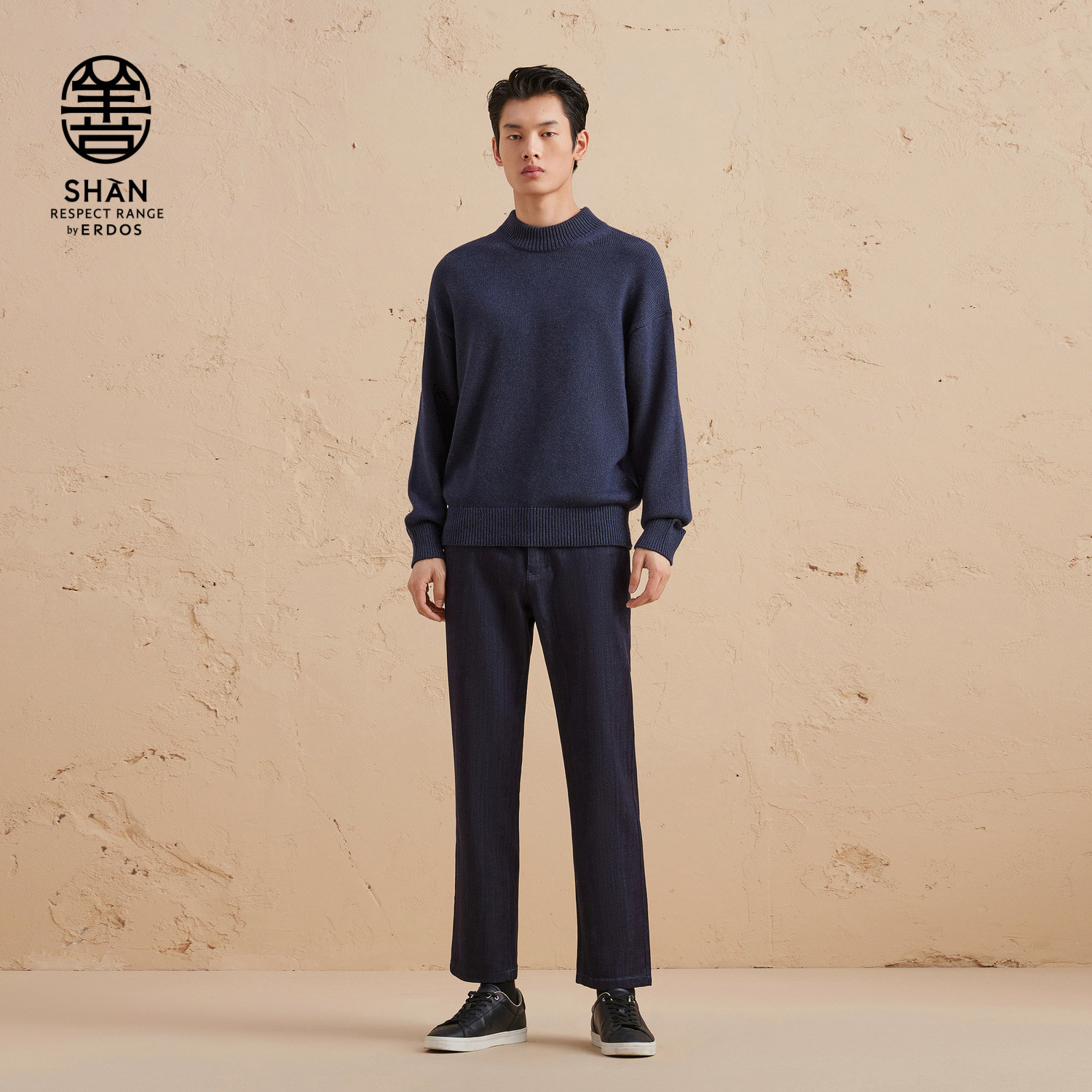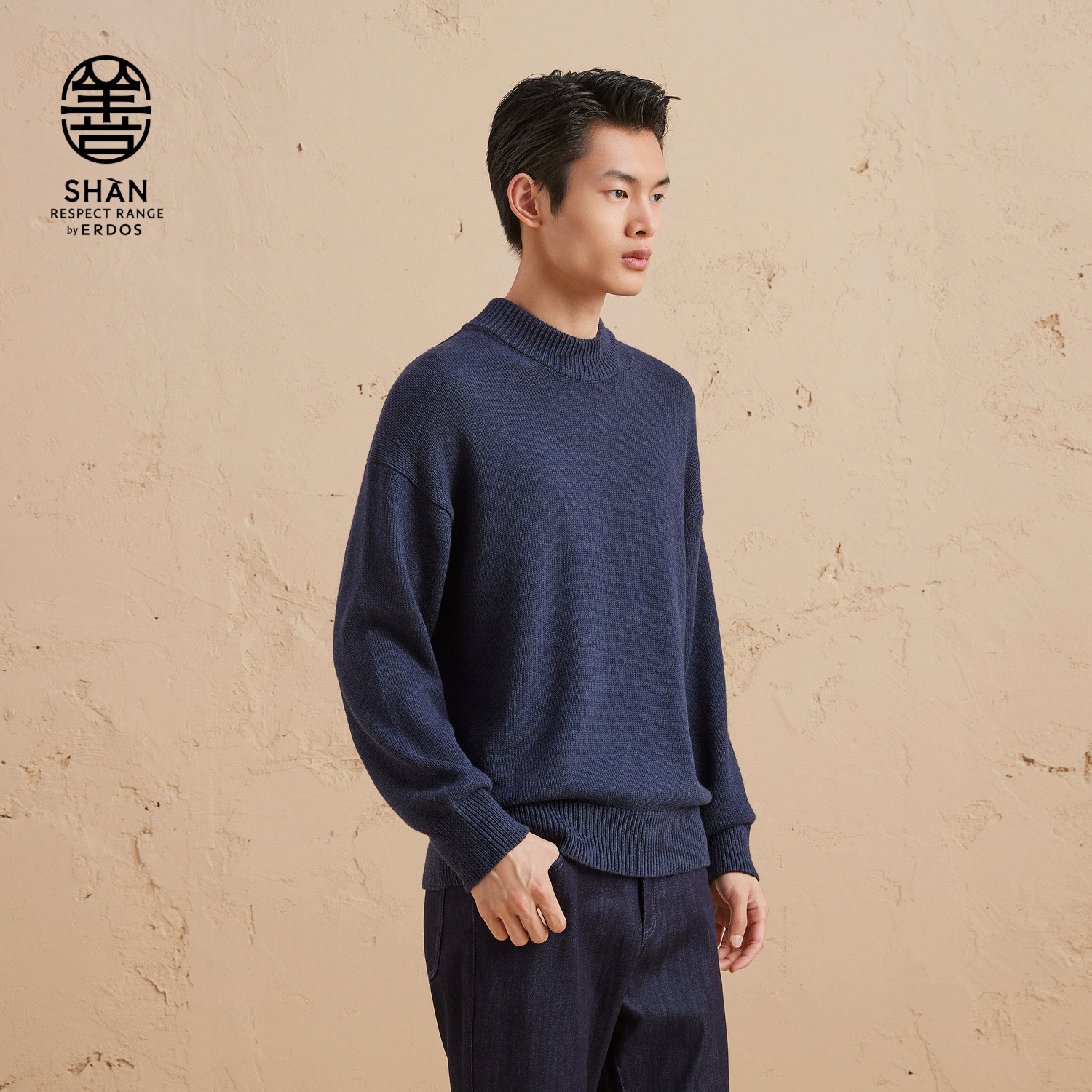 ERDOS 男装棉绒混纺针织衫秋冬精纺半高领宽松加厚保暖