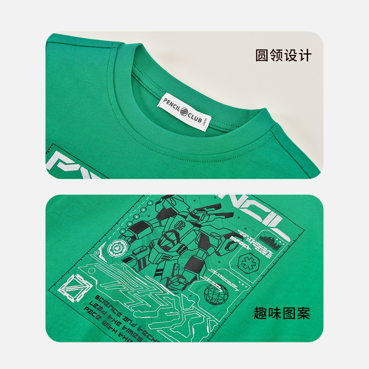 铅笔俱乐部2025年秋装新款男童T恤儿童圆领长袖衫中大童印花上衣