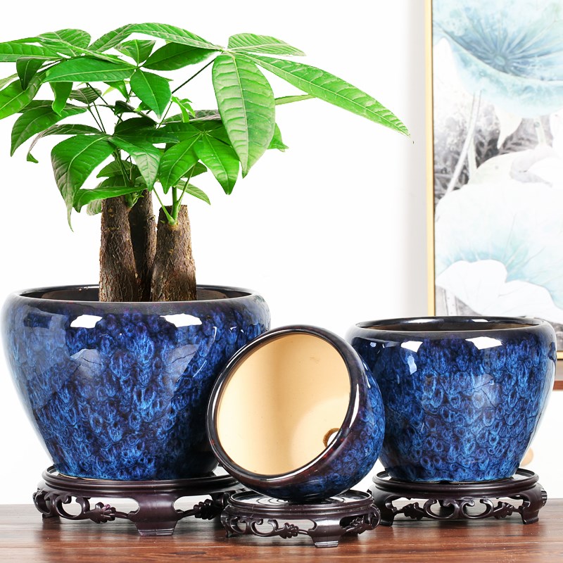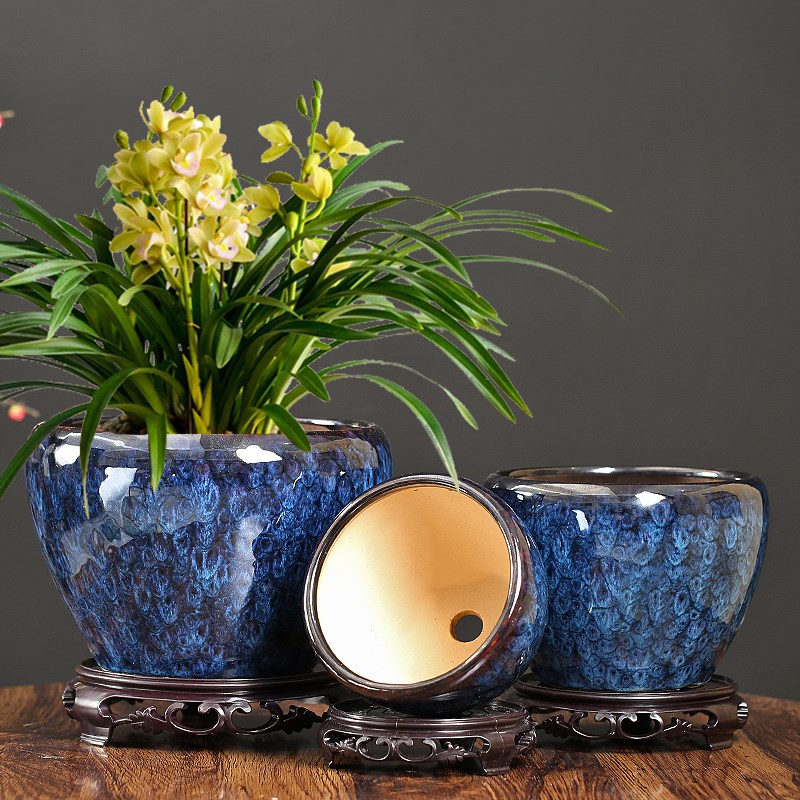 速发花植陶瓷带托盘盆意大号绿创家用落地盆景兰花蝴蝶兰君子兰多