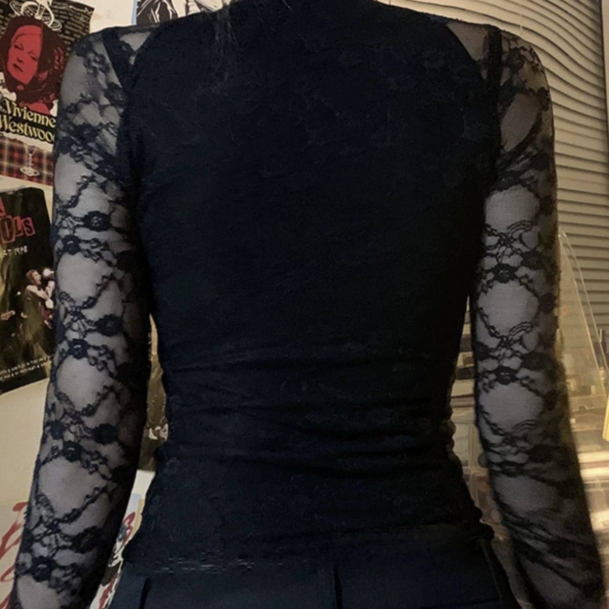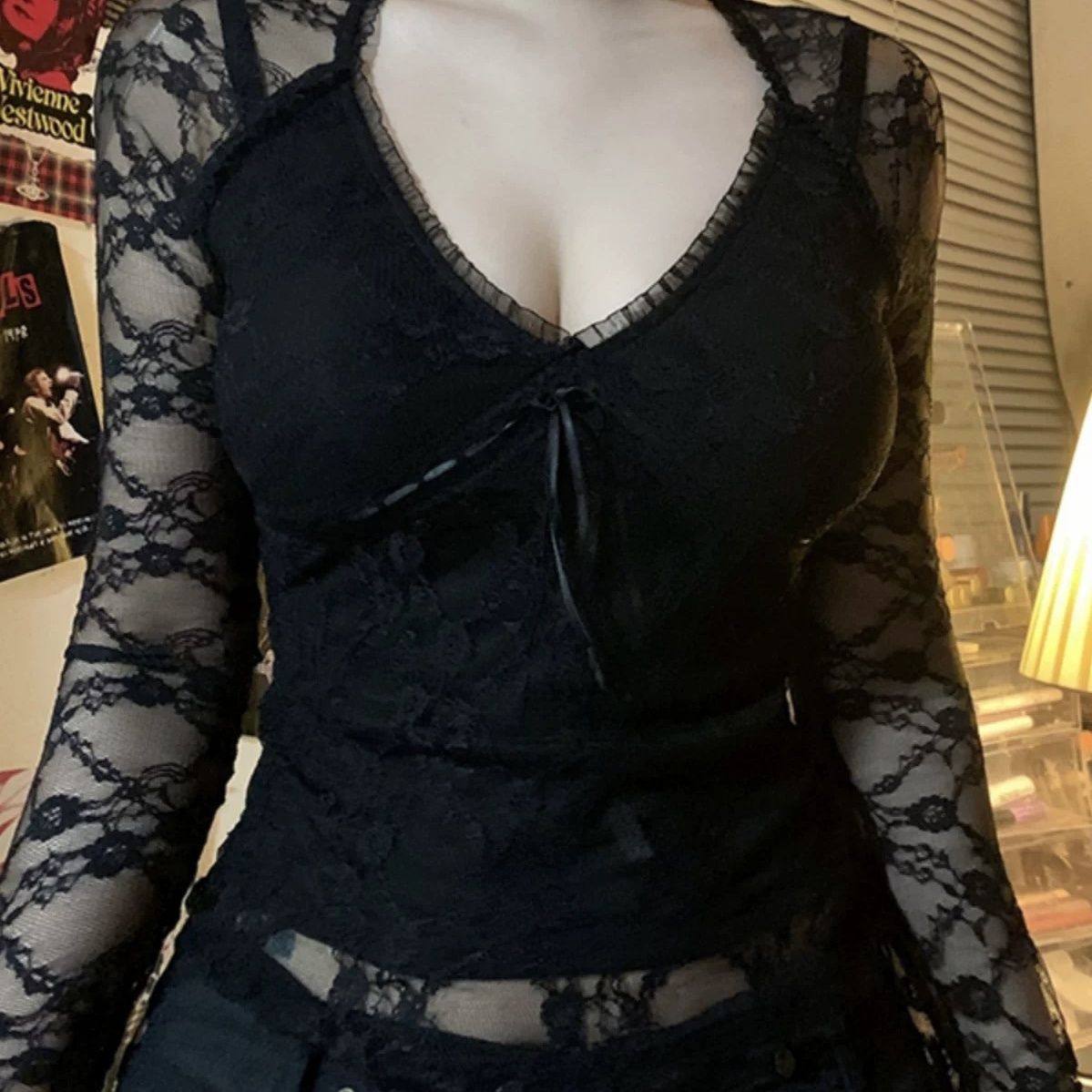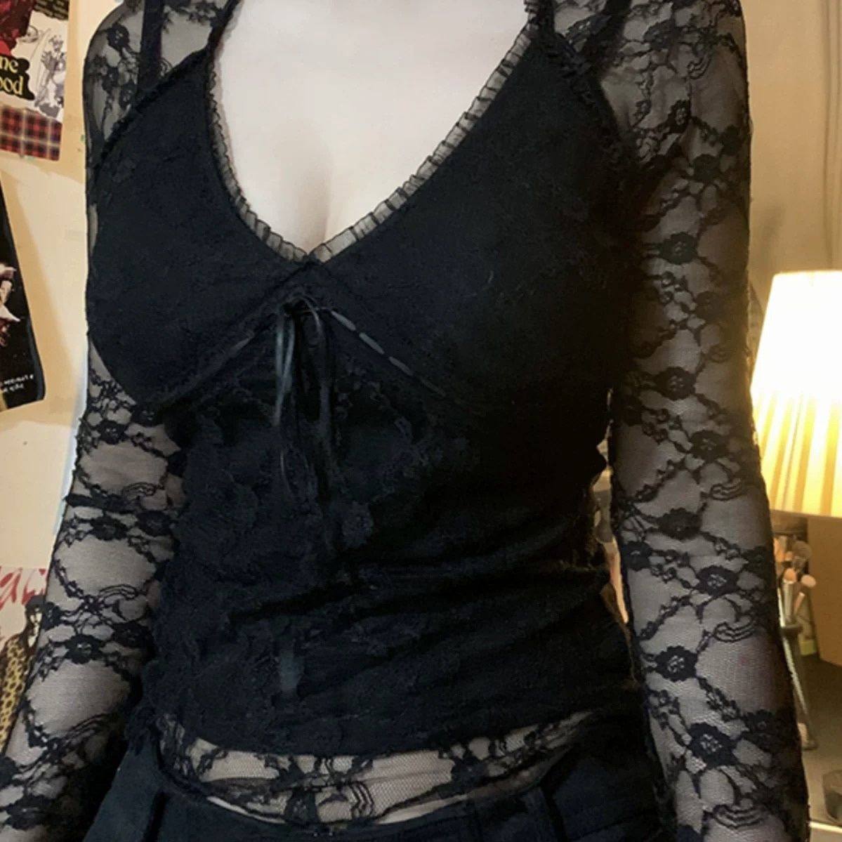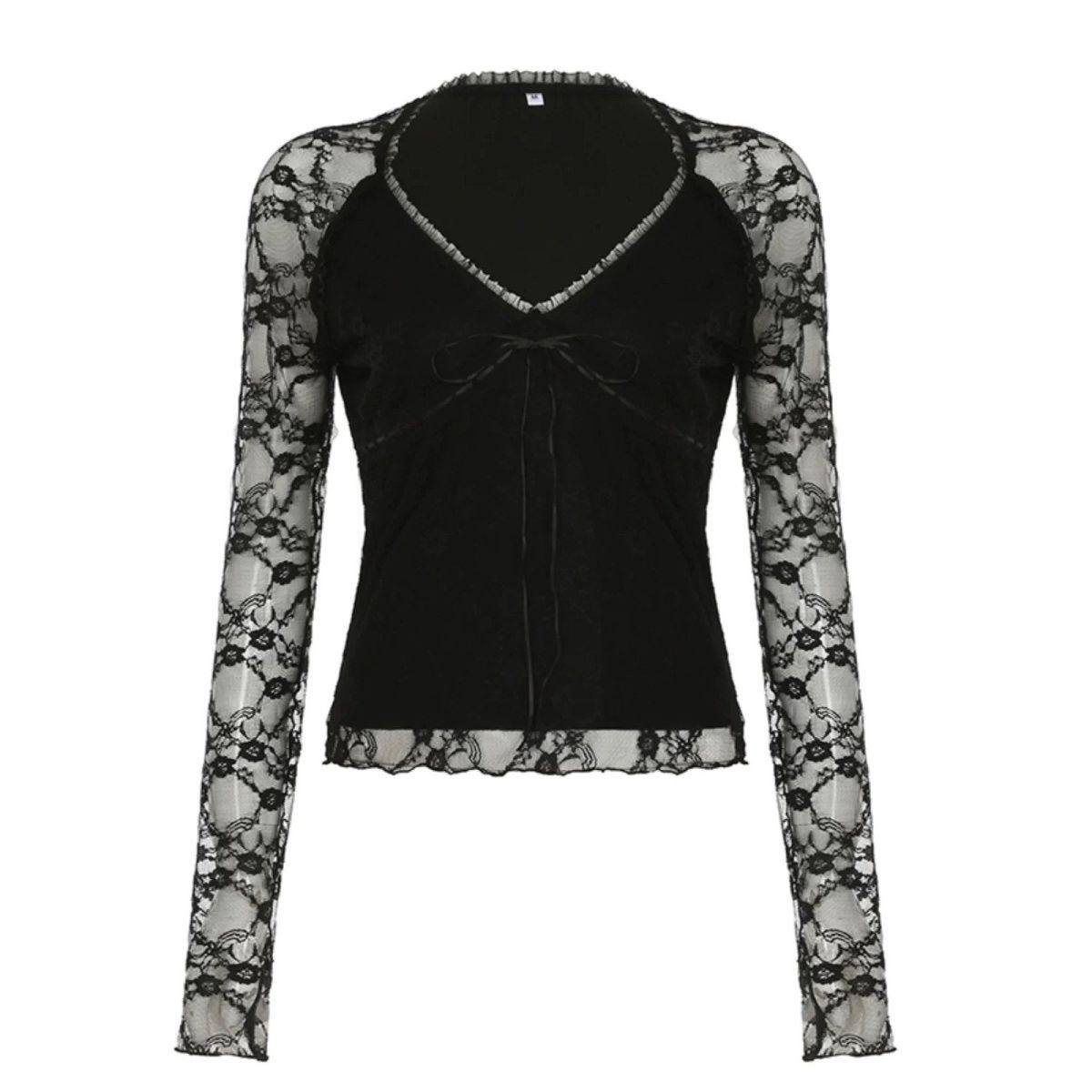 法式性感辣妹V领低胸修身蕾丝衫