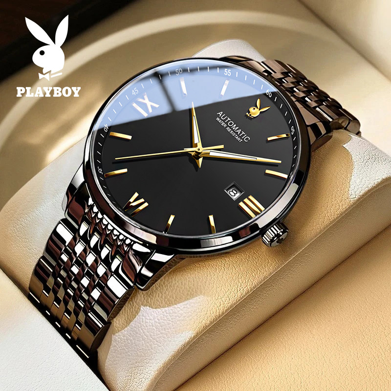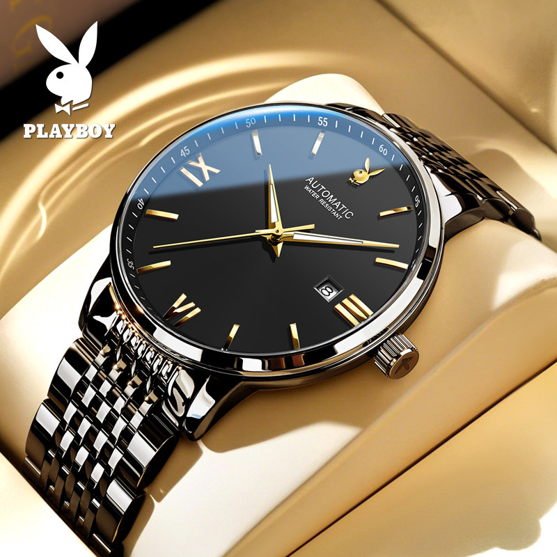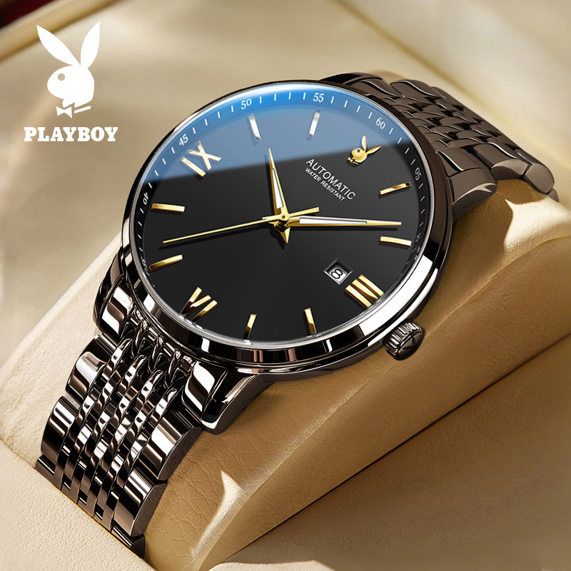 正品花花公子男士手表机械表全自动夜光防水简约腕表品牌新款男表