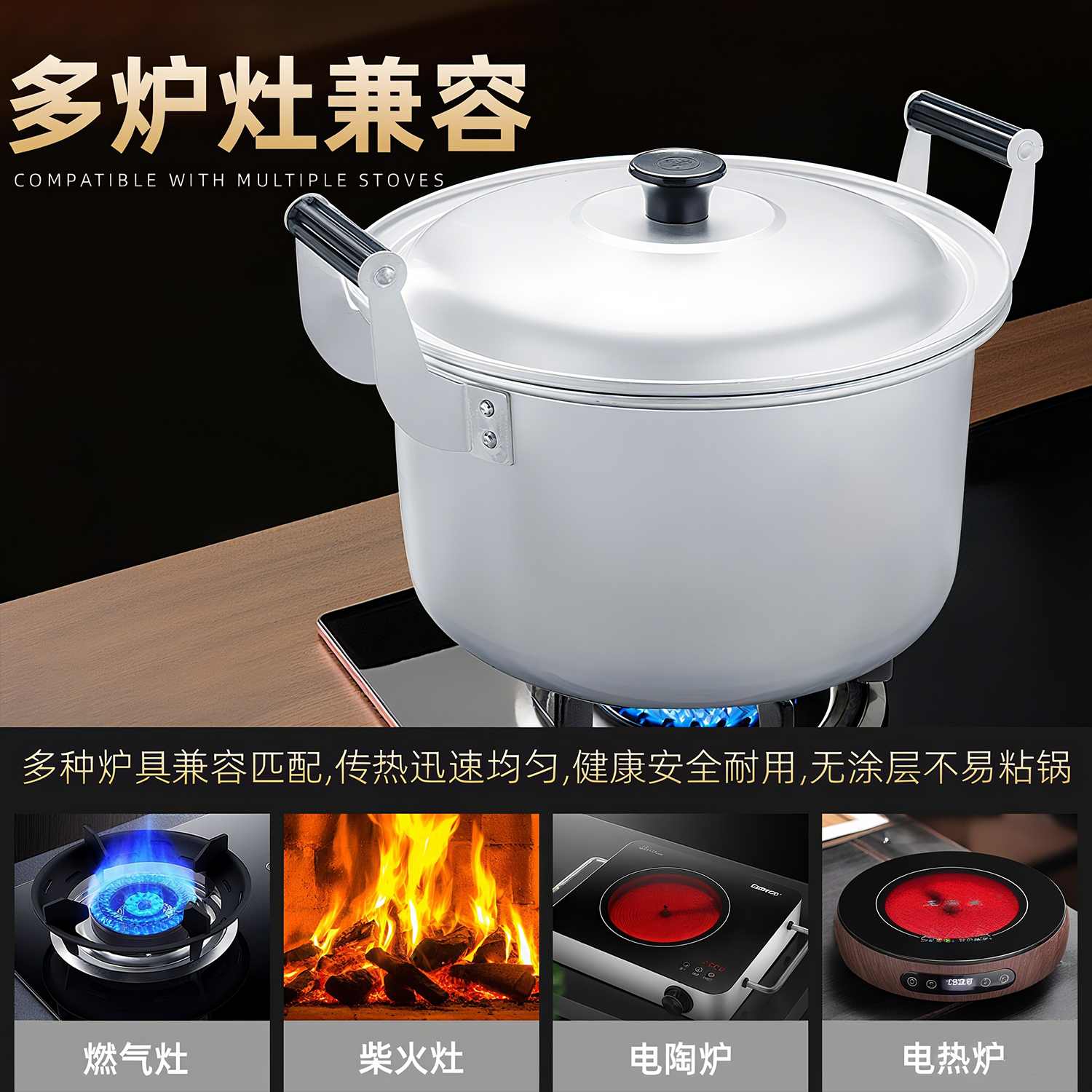 老式铝锅家用加厚大烧水锅双耳小汤锅纯铝煮水锅锑锅铝煲炖锅燃气