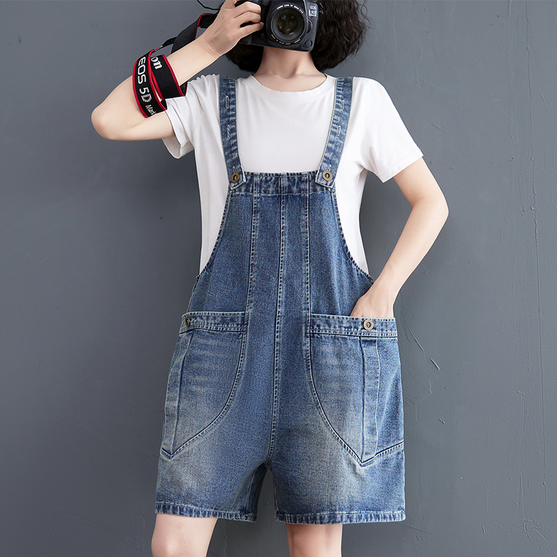 牛仔新款减龄吊带五分裤背带短裤