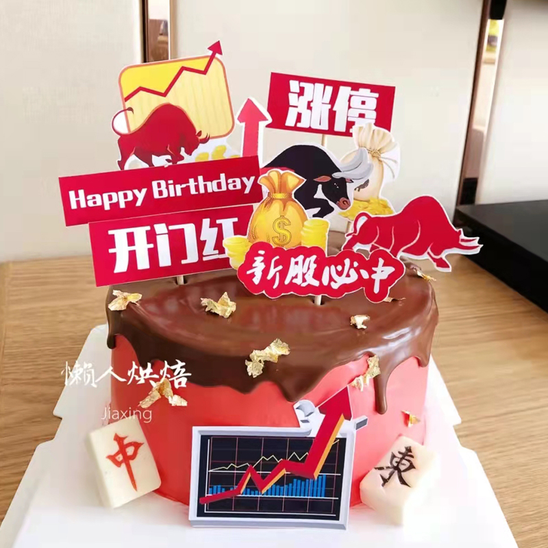 生日蛋糕装饰股市股票牛市涨不停新股必中开门红旺旺旺插件插牌