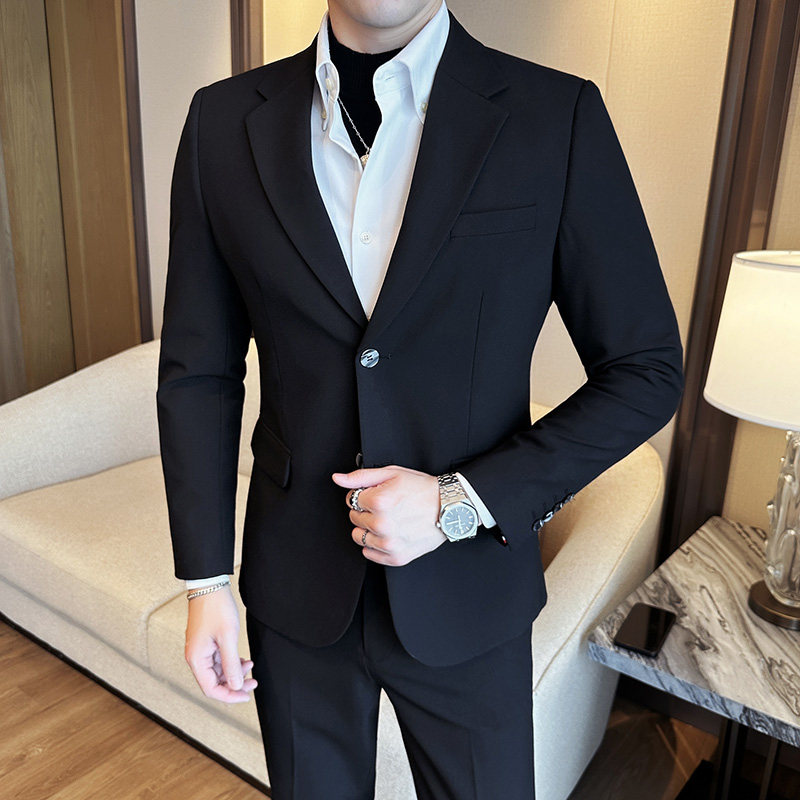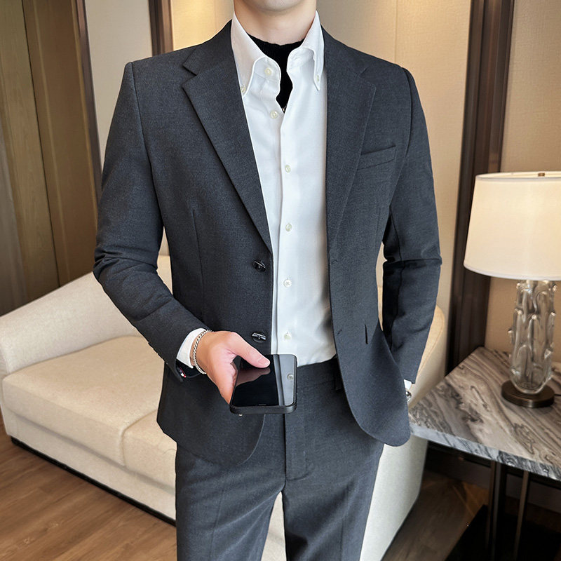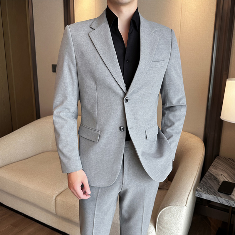 高级灰西服男修身大码潮