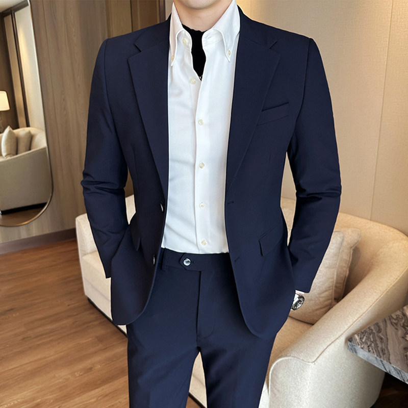高级灰西服男套装秋冬修身大码外套英伦风绅士职业装商务高档礼服