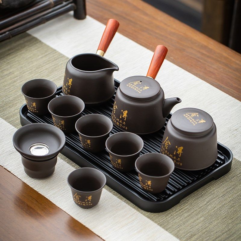 紫砂功夫茶具套装家用客厅一整套泡茶侧把壶茶杯办公室会客带茶盘