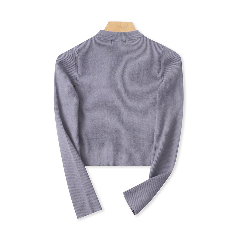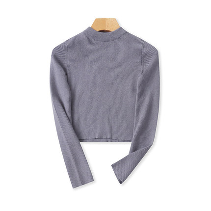 弹力短款针织衫 春秋新款长袖修身立领T恤衫 女时尚打底上衣19422