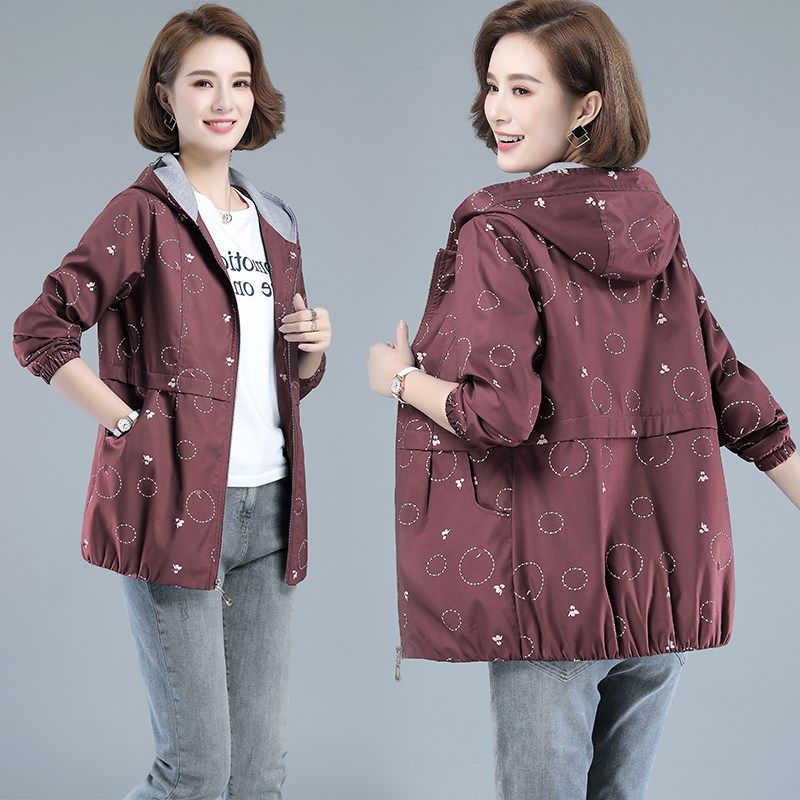 2024春装新款中老年外套女宽松洋气大码妈妈装纯棉风衣女波点上衣