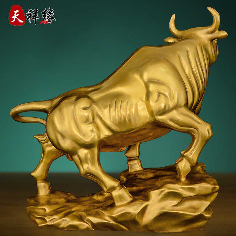 铜牛摆件黄铜牛运势如虹牛招财股市牛市办公室客厅礼品旺市牛大号