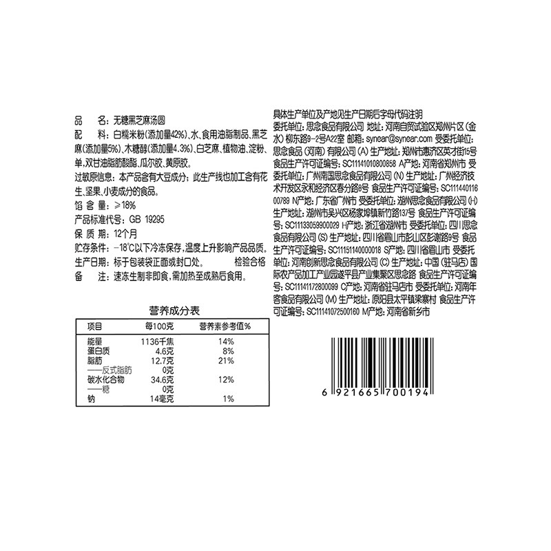 思念无糖黑芝麻汤圆软糯香甜正品