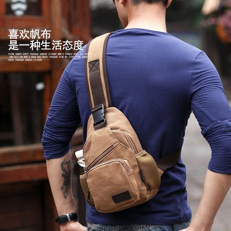 思牧正品韩潮帆布男单肩休闲胸包