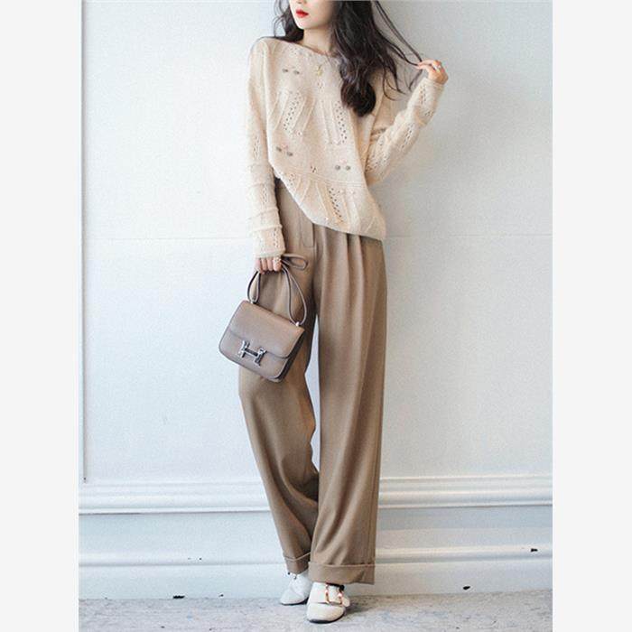 欧洲站2025秋冬新款时尚休闲毛衣阔腿裤气质名媛英伦风两件套装女