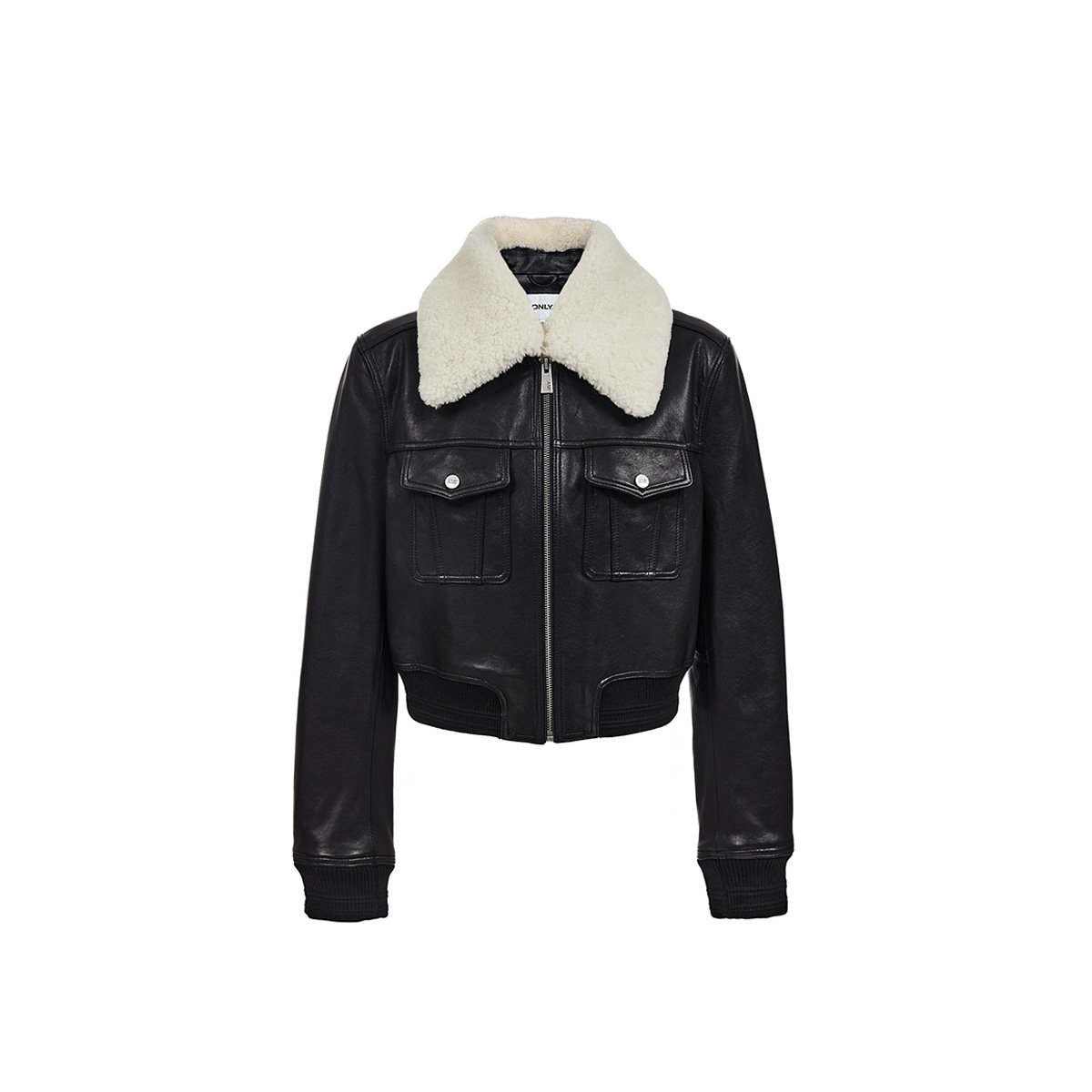 绫致ONLY2025冬季新款保暖羊毛领质感羊皮真皮夹克外套女
