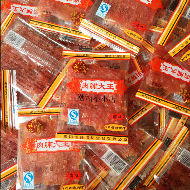 潮汕揭阳特产钟福记肉脯大王碳烧猪肉脯原味黑椒味零食一袋500克