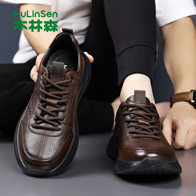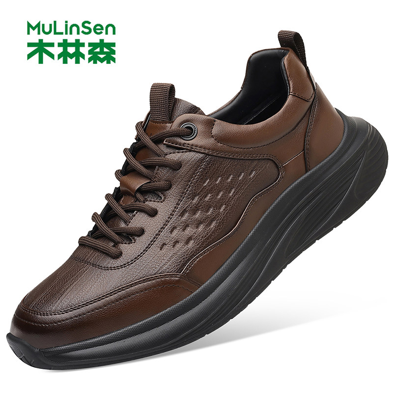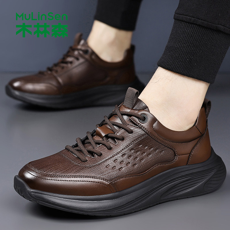 木林森真皮休闲皮鞋男软底防滑透气百搭商务鞋百搭舒适系带男鞋
