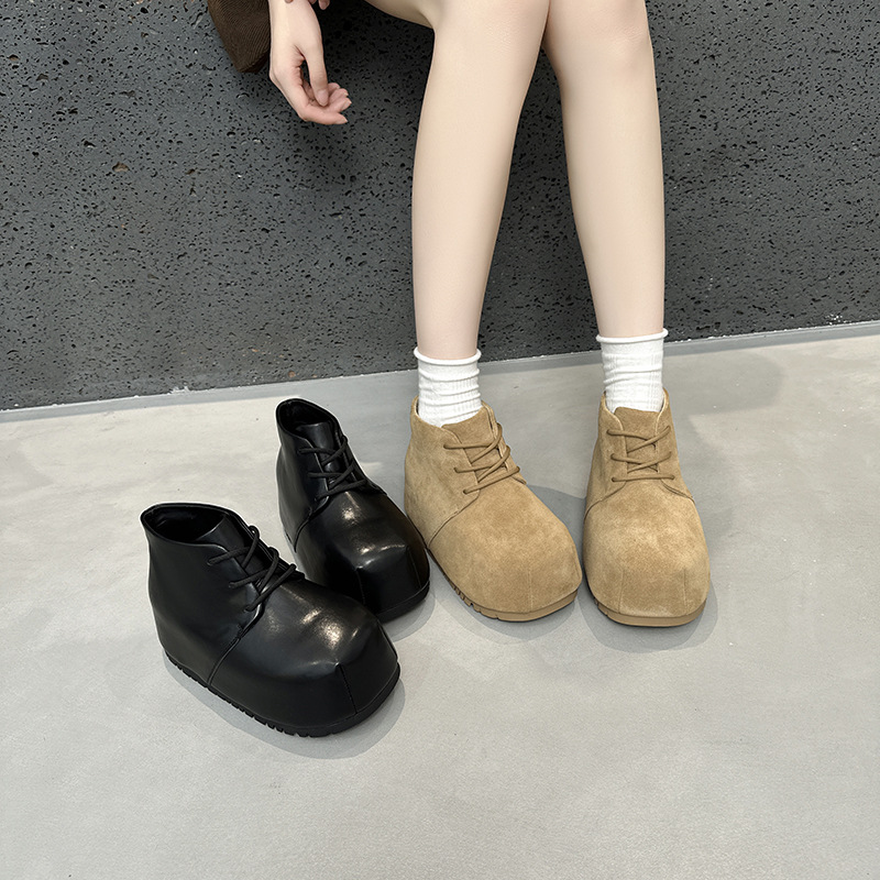 欧洲站厚底勃肯短靴女2025秋动新款真皮马丁靴时尚百搭休闲面包鞋