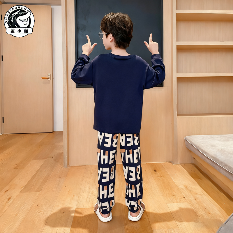 儿童睡衣男童长袖春秋薄款纯棉