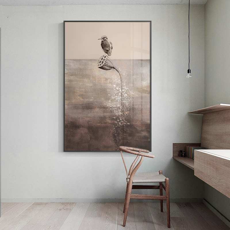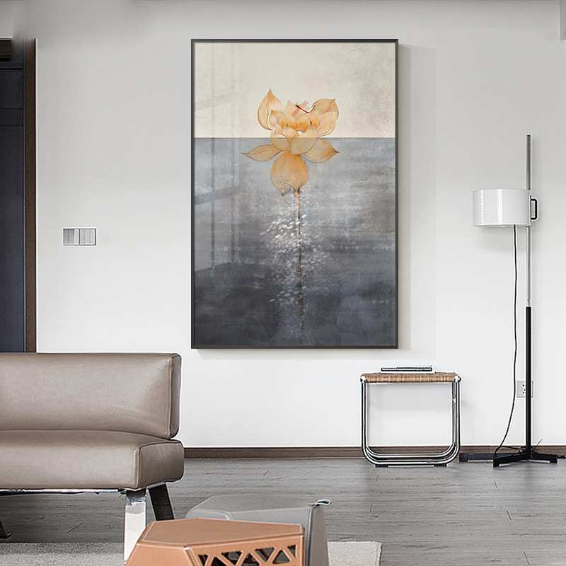 新中式玄关装饰画现代简约竖版餐厅壁画荷花图中国风禅意客厅挂画