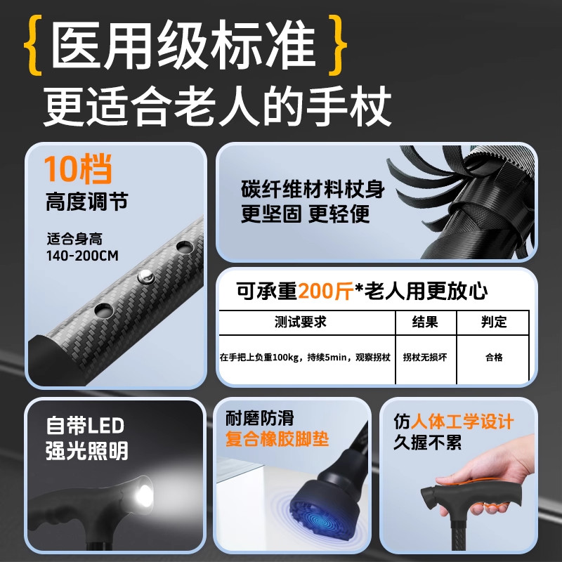 【医用拐杖】老人防滑拐杖碳纤维超轻便手杖拐棍防滑登山老人助行