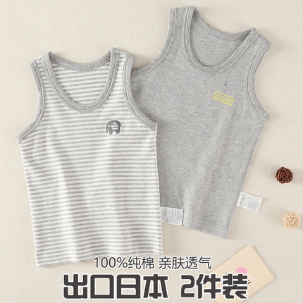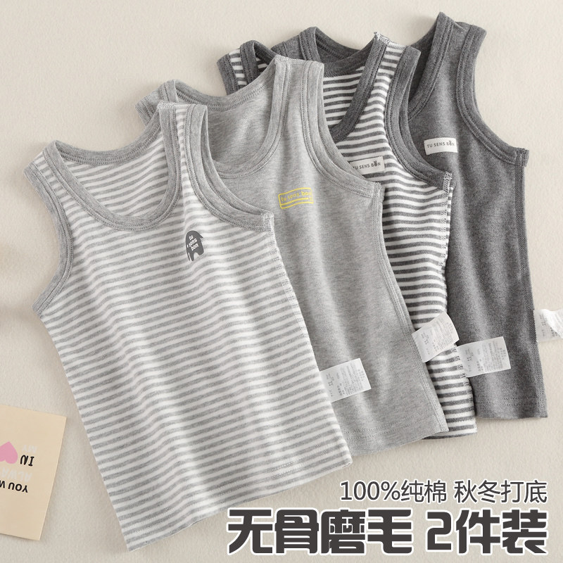 秋冬儿童纯棉无骨背心条纹宝宝日系打底衫中小大童内衣男女童睡衣