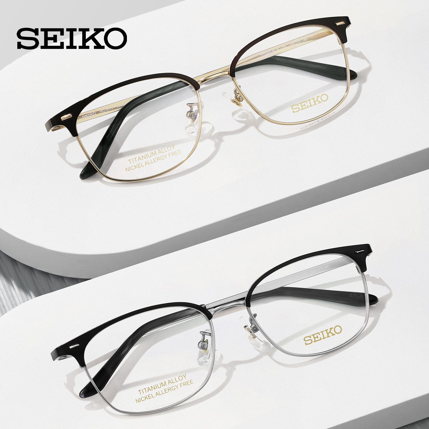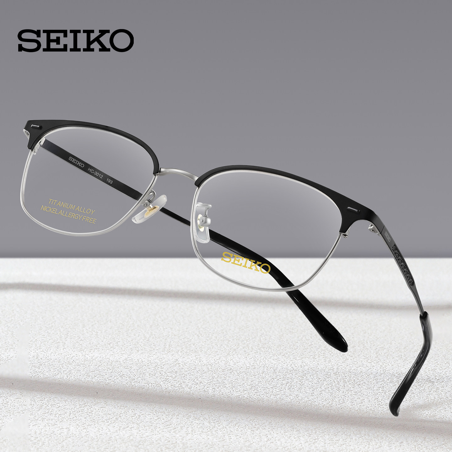 SEIKO精工眼镜框男眉框半框时尚钛合金镜架可配近视镜片宝岛3012