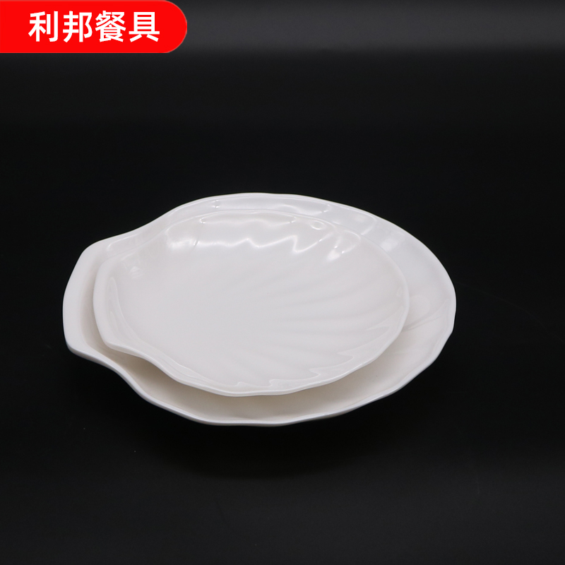 A8高档密胺仿瓷餐具创意贝壳盘子商用碟子塑料盘酒店餐厅火锅盘