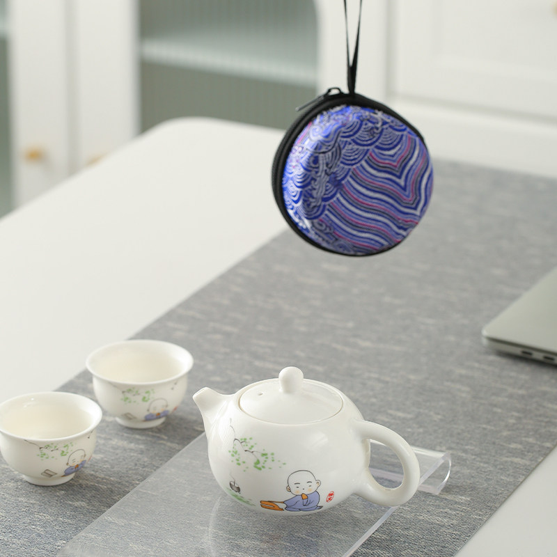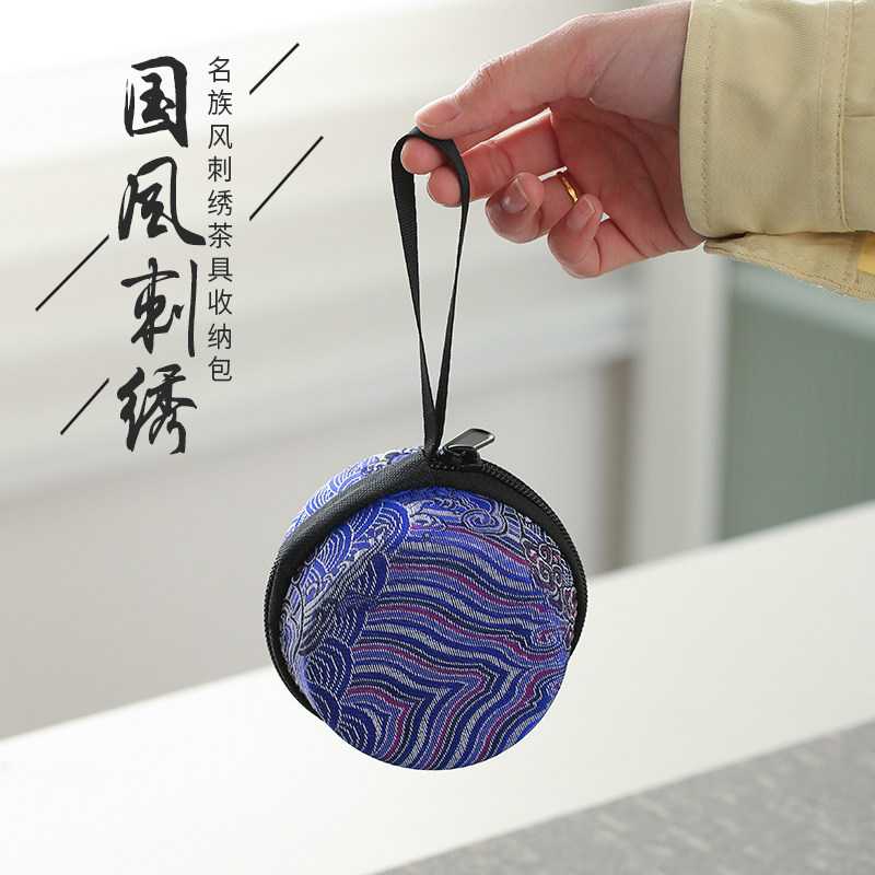 布袋胶囊刺绣收纳包便携式旅行茶具包户外露营茶杯快客杯收纳袋